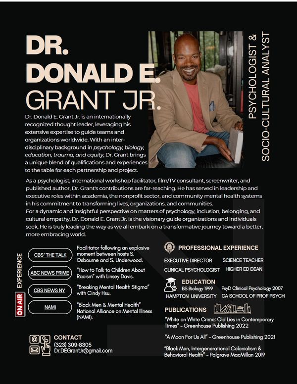 Dr. Donald E. Grant is an award-winning psychologist, educator, and executive director of Mindful Training Solutions. With over two decades of experience in cross-cultural psychology and organizational development, he has dedicated his career to dismantling systemic inequities and fostering radical inclusion across industries.