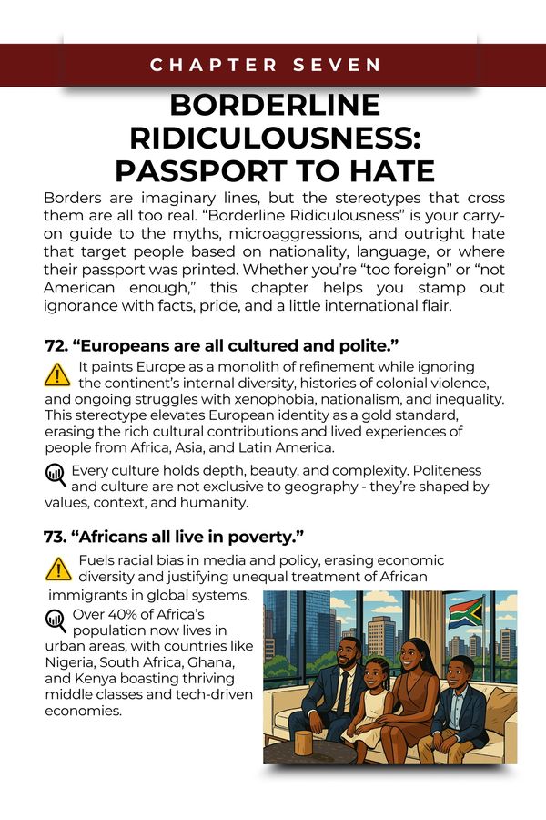 Stereotypes are everywhere—woven into the fabric of our jokes, attitudes, news headlines, movies and everyday conversations. Virtually unnoticed, some slip by, so ingrained that they blend easily into the background; others sting, leaving marks that linger. Ultimately, this book doesn’t just list 101 of the most common stereotypes you’ll encounter; it equips you with practical tools to analyze, recognize, question, and dismantle them.